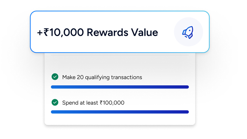 Spend ₹1 lakh overseas + make 20 transactions to unlock a flat ₹10,000 milestone bonus.